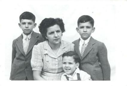 | Come tanti Napoletani, mio padre perse tutto durante la guerra, situazione, case ecc..., persino il contenuto della casa dove eravamo sfollati a Sant'Anastasia. Lasciammo la casa durante l'eruzione del Vesuvio ed al ritorno, la ritrovammo vuota: 'O cane mozzeca ê stracciati! Per fortuna, mio padre avendo una solida istruzione, non finimmo tra i tanti minatori che invasero il Belgio. Dopo qualche anno, mio padre assunse la funzione di Direttore dell' ENIT (Ente Nazionale Italiano del Turismo) e quindi dipendente del Ministrero del Turismo Italiano. La prima foto, molto triste, la facemmo per il passaporto quando partimmo per Belgio, nel settembre del 1948. Da sinistra verso la destra: io, Mamma, l'ultimo fratellino Luciano e mio fratello Gaetano. | |